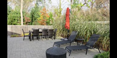 Enjoy Michigan evenings in the backyard with dining table, grill, game area and gas fire pit